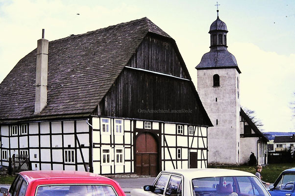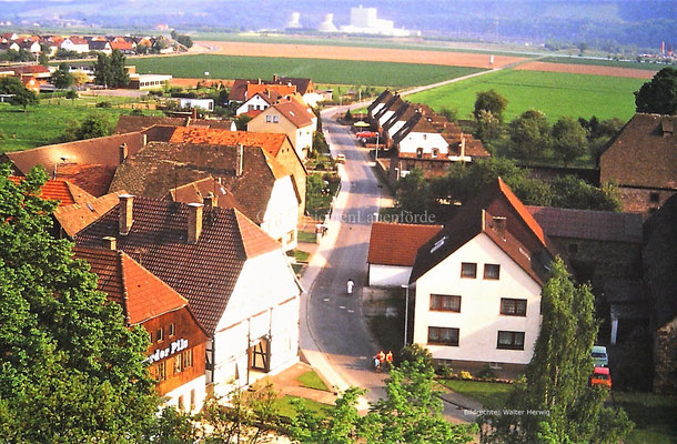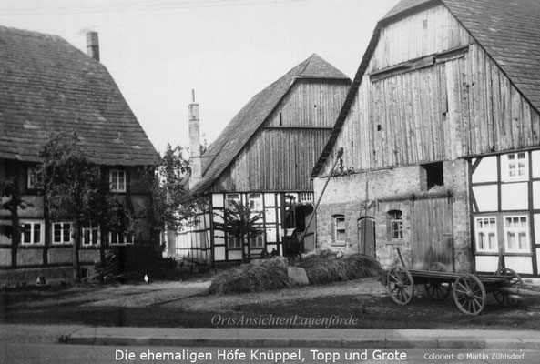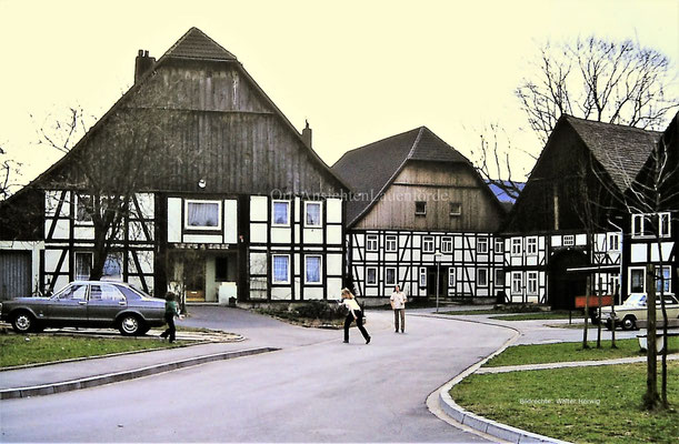 1970er Jahre. Hof Topp (davor stand vorher noch Hof Grote) und im Hintergrund die Kirche. Höfe Knüppel, Topp und Grote.