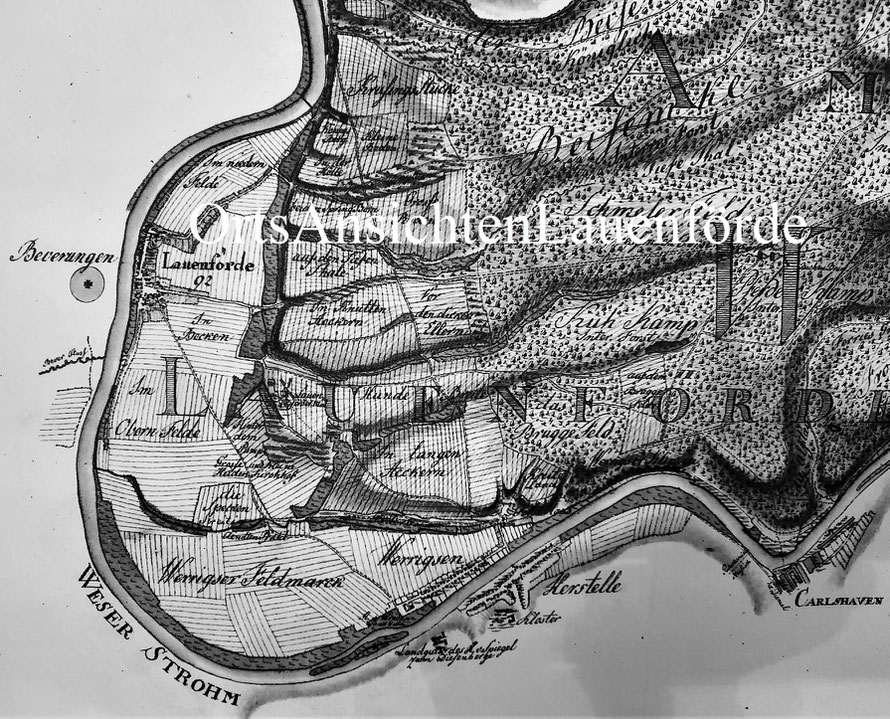Lauenförde zählte zu der Zeit 92 Feuerstellen (Häuser). Die "Hunde Breite" gab es schon, "Rote Höfe" hiess damals "Im Becken". Würgassen hiess "Werrigsen" und "Carlshaven" noch mit "C" dafür ohne "Bad".