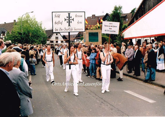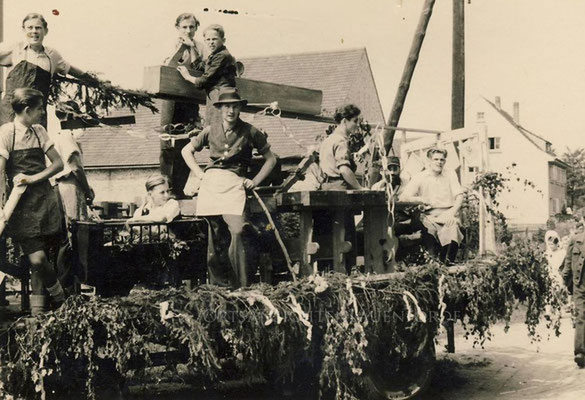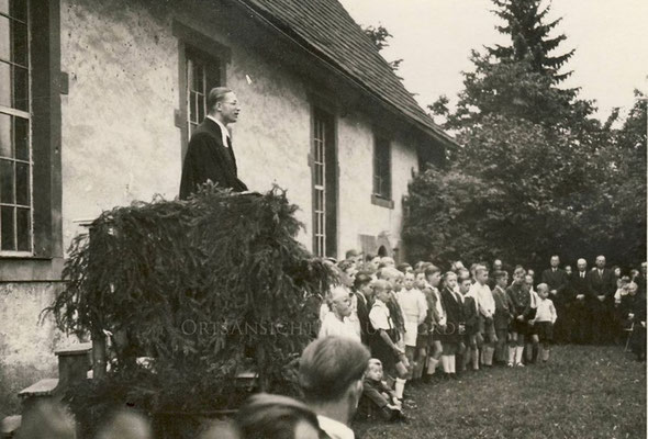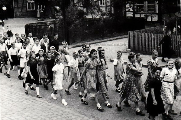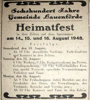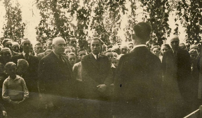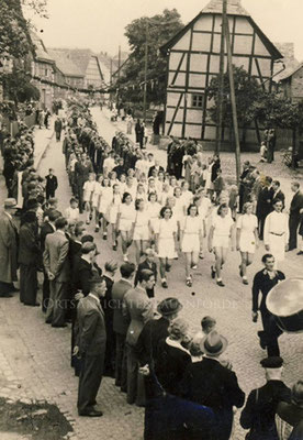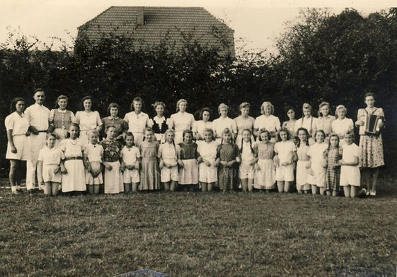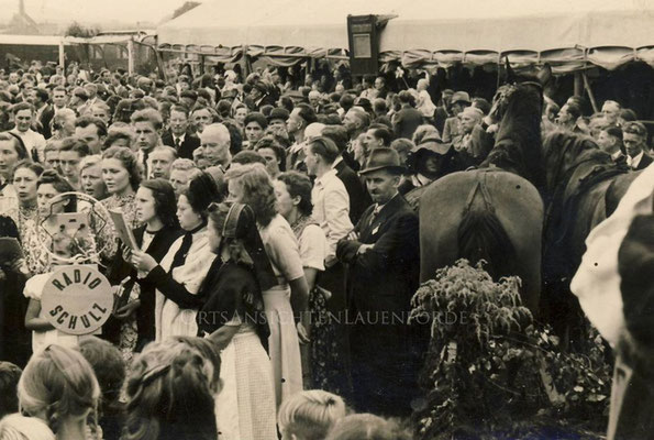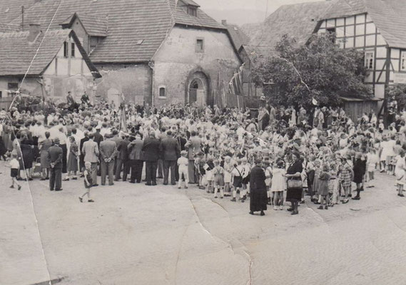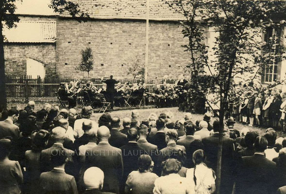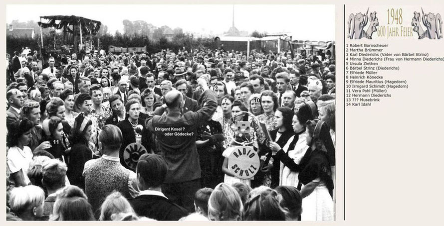 Der Gemischte Chor und Besucher auf dem Sportplatz anlässlich der 600 Jahr Feier 1948.