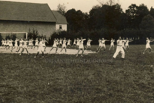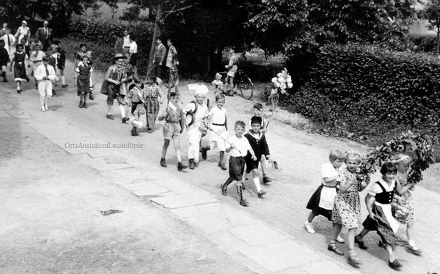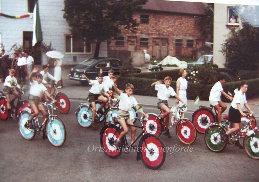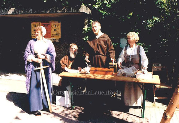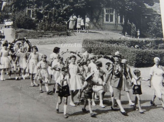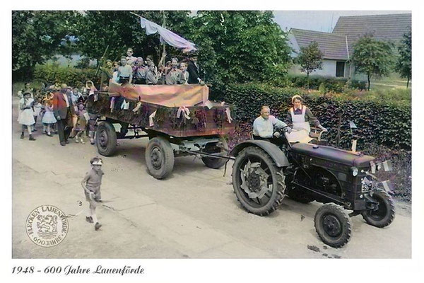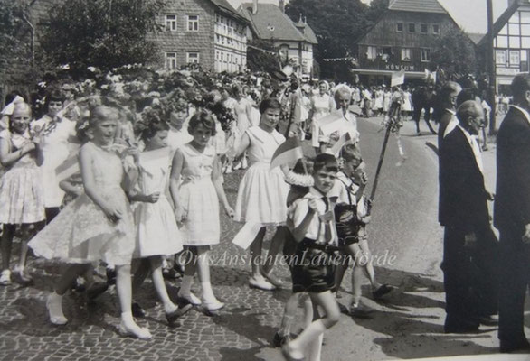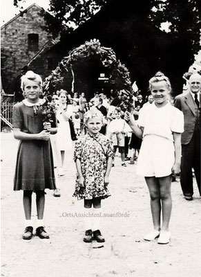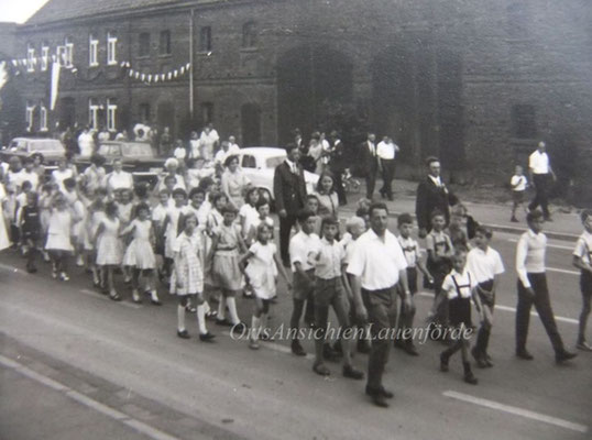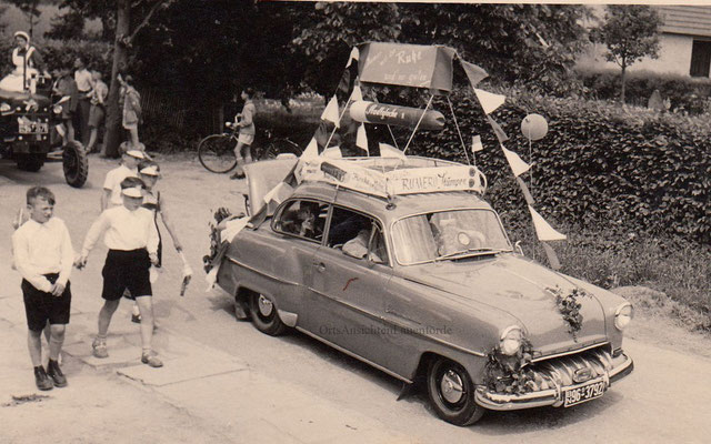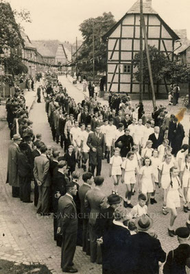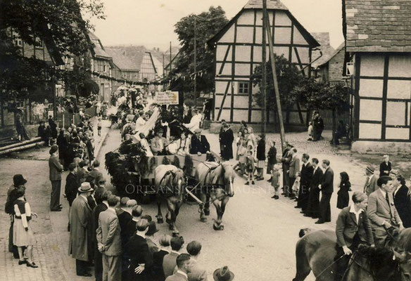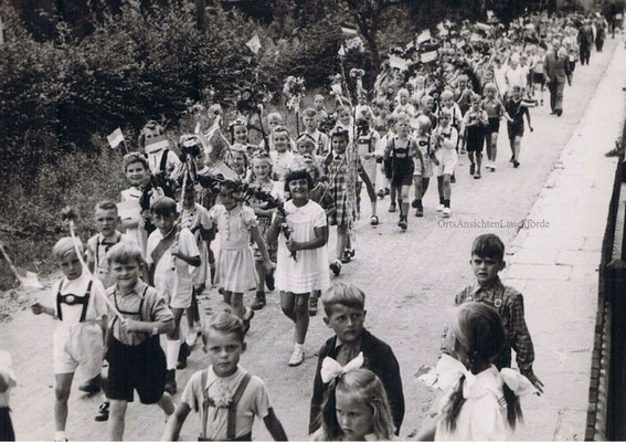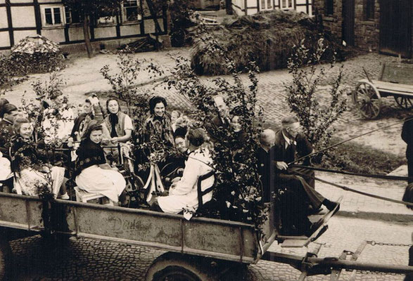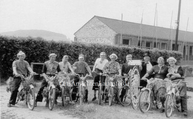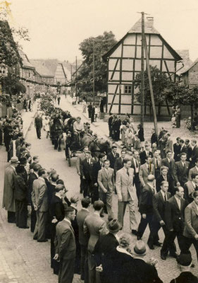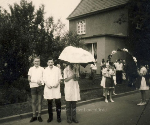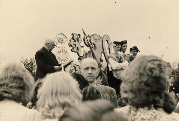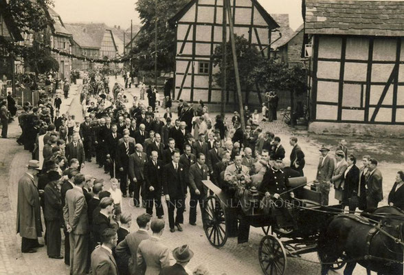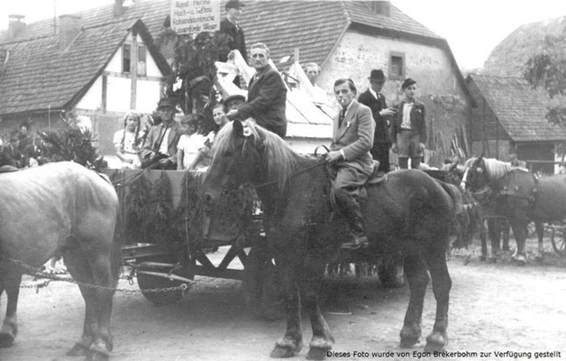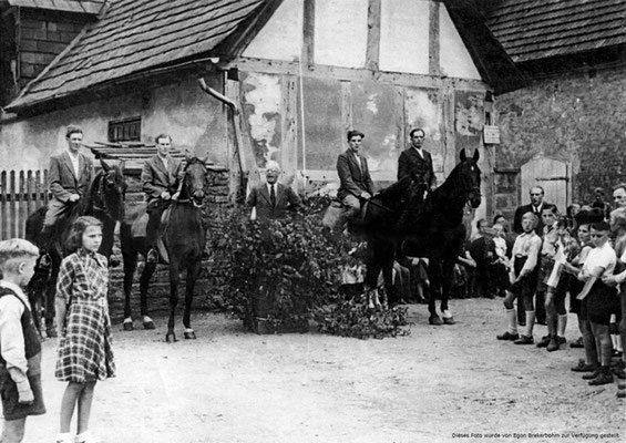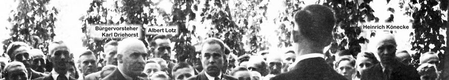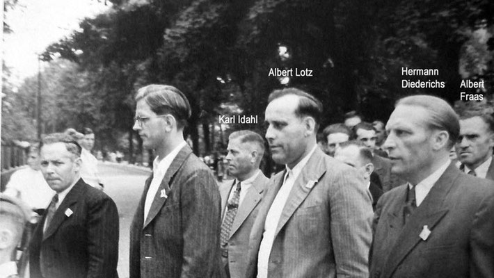 Karl Driehorst, der damalige Bürgermeister, Albert Lotz und Heinrich Könecke (gekennzeichnet). Erich Witzel (rechts neben Driehorst, ihm zugewandt). Da politisch unbelastet, war er gleich nach dem Krieg mit einer Aufgabe in der Verwaltung betraut worden. (Später war er für einige Jahre Schiedsmann, ein Amt, das er dann an Diedrich weitergab.)
