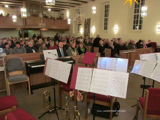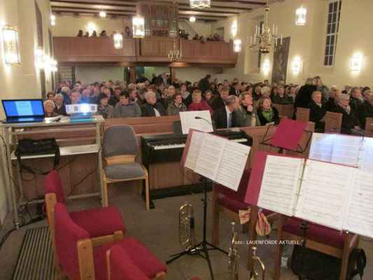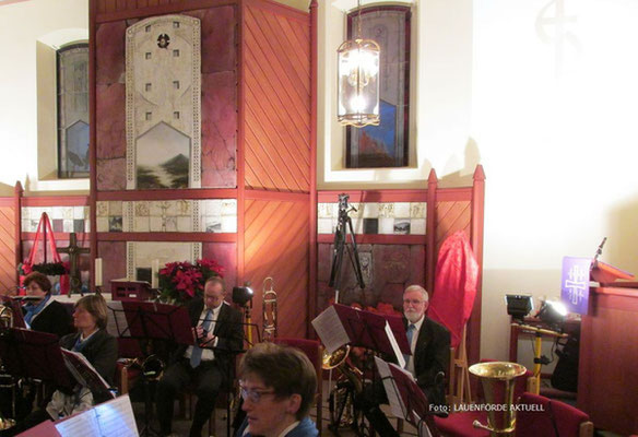 Einen besonders klangvollen Abend durften am Samstag die Besucher des "Pro Musica Sacra" Konzertes in der St. Markus Kirche zu Lauenförde erleben. Nachdem Helge Thies die Besucher und insbesondere, seinen Vater Wolfgang Thies begrüsst hatte, begann der musikalische Teil des Abends mit "Des soms animé" von Dirk Brossé. Wolfgang Thies hatte die Musiker von "Pro Musica Sacra" aus Siegen nach Lauenförde geholt, um den Bläsern des Posaunenchores zu danken, den er 1965 mit wiedergefundenen Blasinstrumenten, neu gegründet hatte.